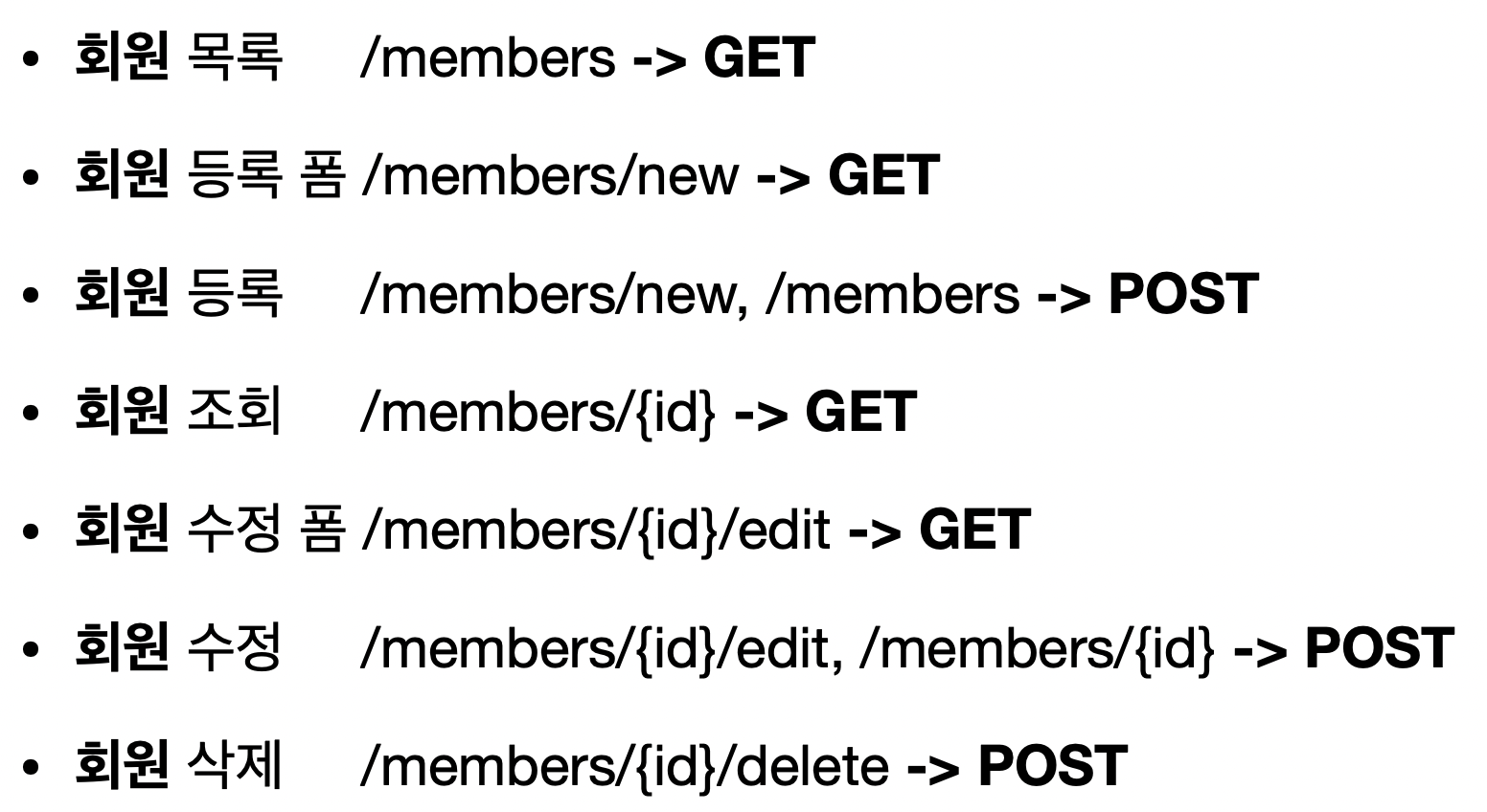 - /members/{id}/delete 여기서 /delete가 컨트롤 URI이다.