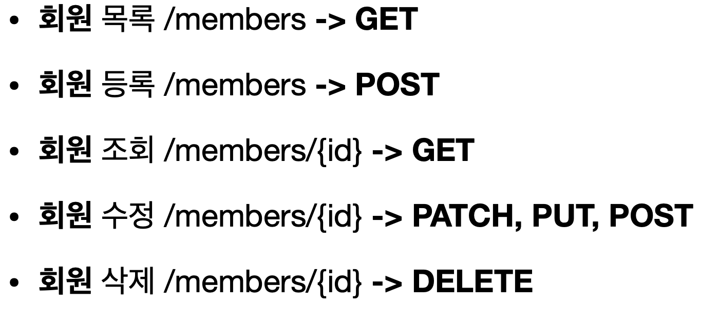 회원등록을 POST로 한다. - 클라이언트는 등록될 리소스의 URI를 모른다