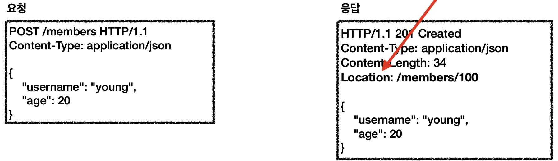 - 새로 생성된 리소스는 응답의 Location header필드로 식별 할 수 있다.