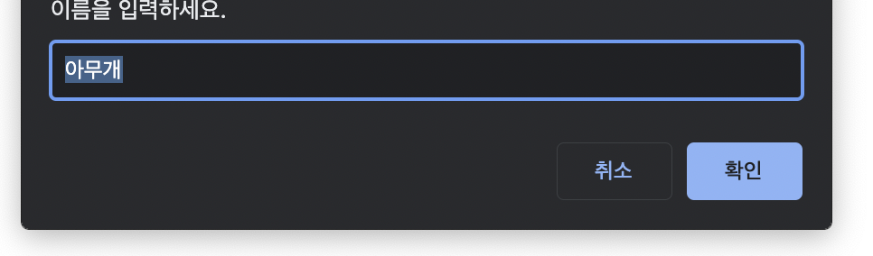 프롬프트는 텍스트 필드가 있는 작은 창이다. 프롬프트 창을만들땐 기본값을 지정하거나 지정하지 않을 수 있다.