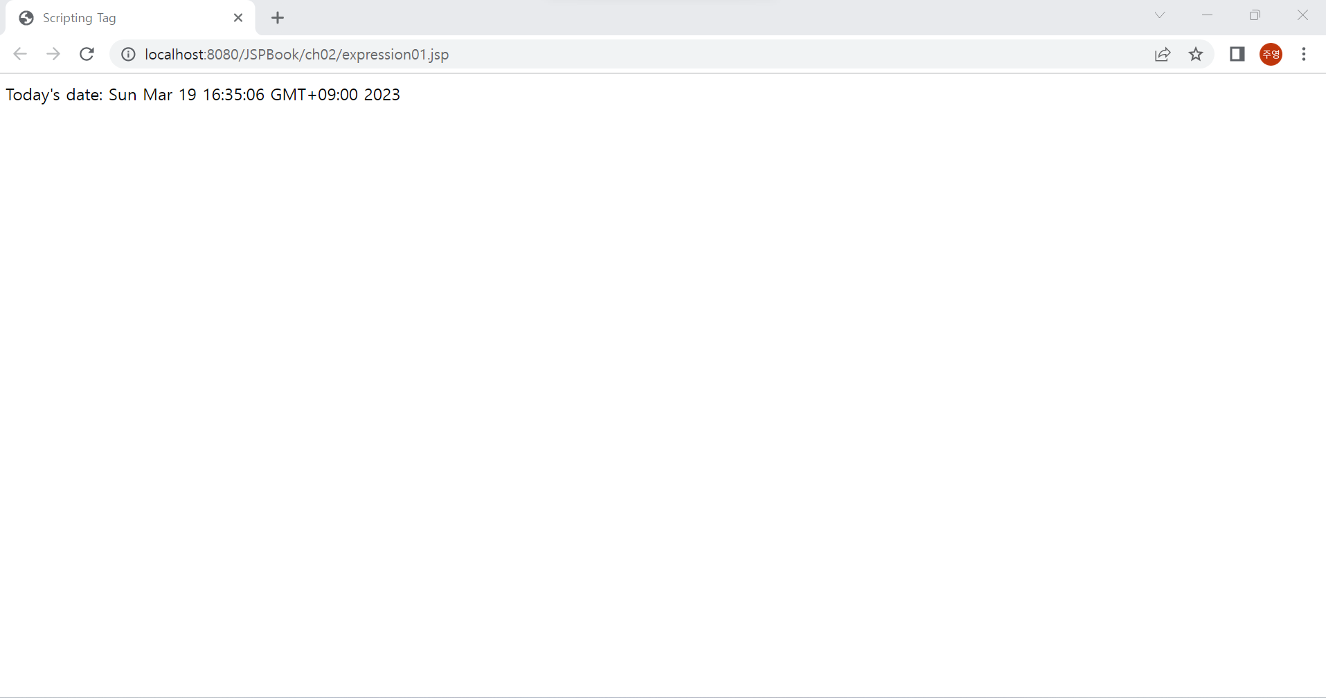 <html> <head> <title>Scripting Tag</title> </head> <body> <p> Today's date: <%= new java.util.Date() %></p> </body> </html>