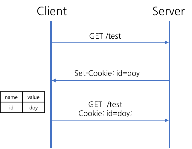 Cookie: id=doy //쿠키는 local pc에 키와 값 형태의 작은 데이터 파일로 저장된다.